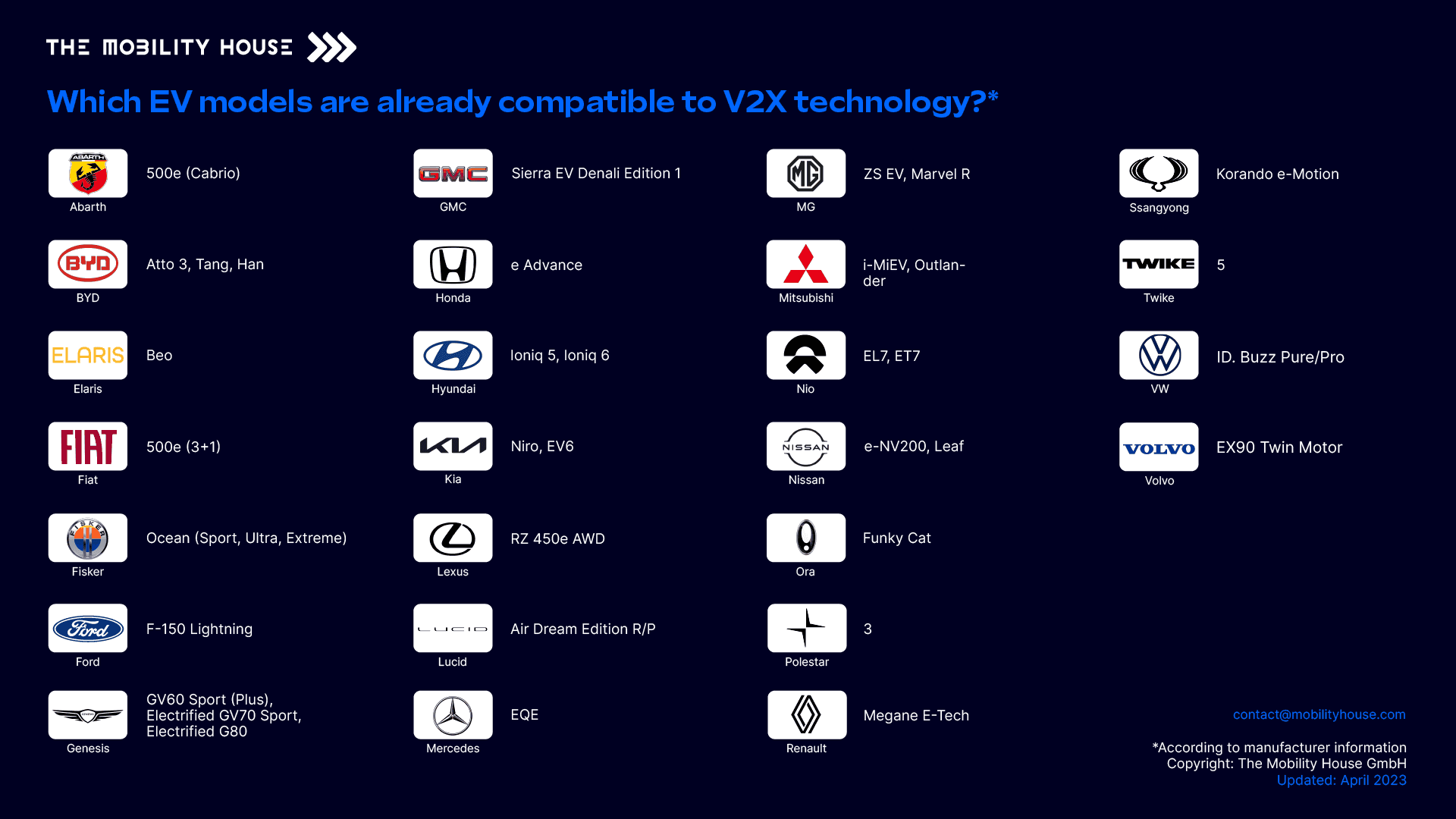Here you will find a selection of V2G-capable car models. However, the information collected does not claim to be complete.